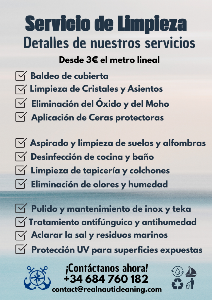 Limpieza interior Completa del barco (+ pequeño repaso exterior bajo demanda incluido):